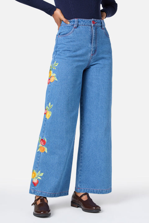 Spijkerbroek met fruitborduurwerk