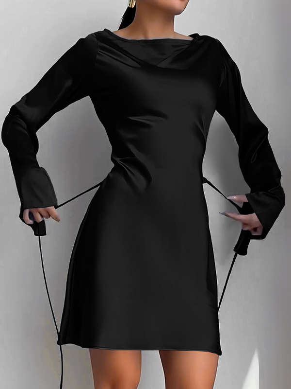 Minivestidos de un solo hombro, color liso, sin espalda, mangas largas