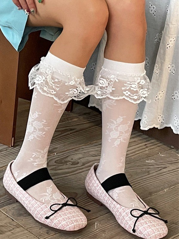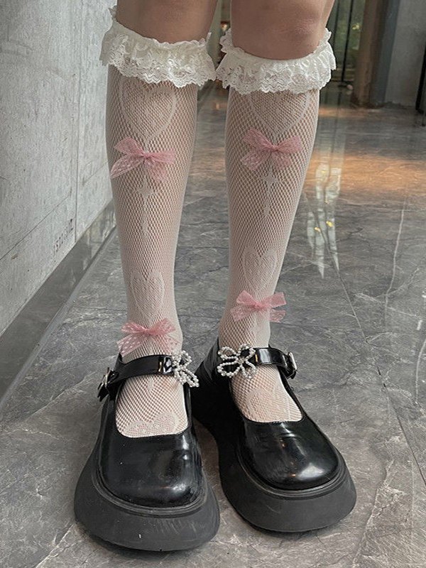 Calcetines hasta la rodilla con estampado de corazón y adorno de lazo