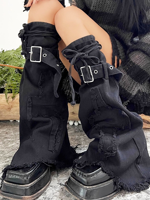 Calentador de piernas acampanado con cordones y estampado cruzado