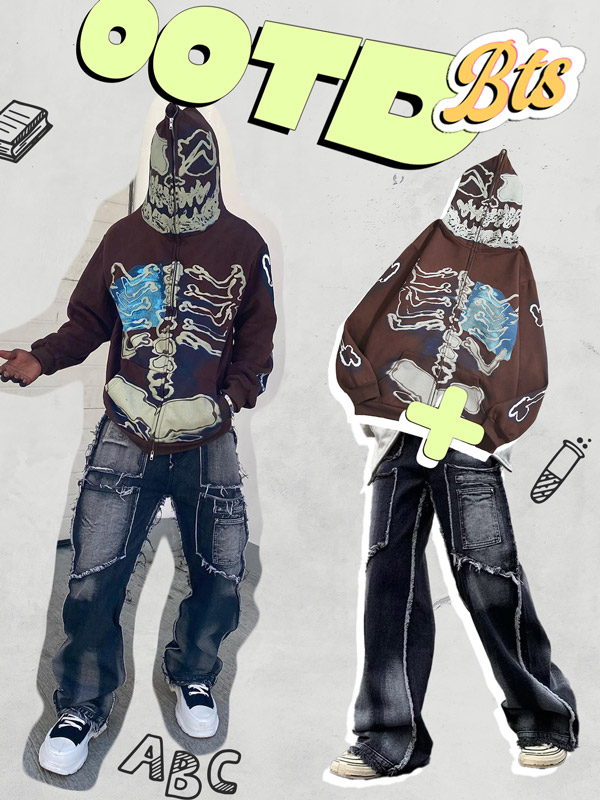 Sudadera extragrande con capucha y estampado flocado para hombre