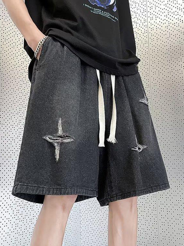 Pantalones cortos con cordón y roturas de estrella vintage para hombre