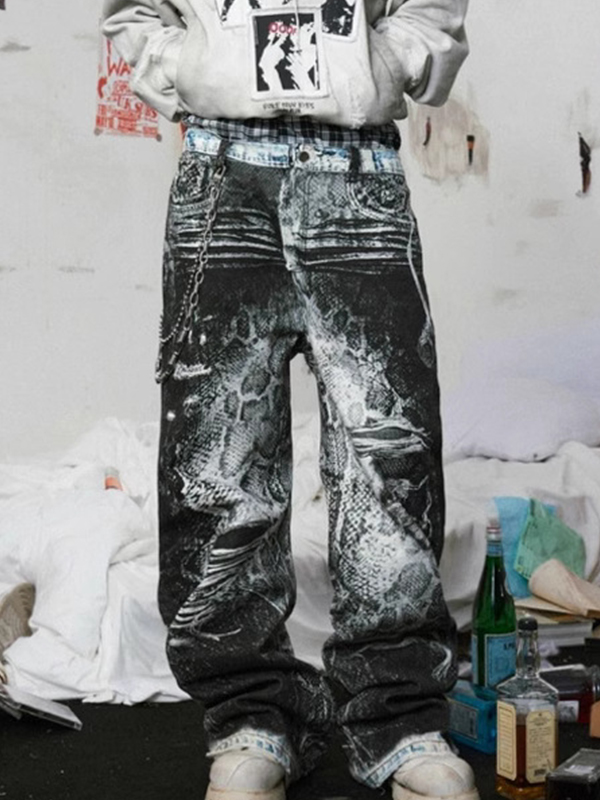 Vaqueros rectos azules con efecto teñido anudado para hombre