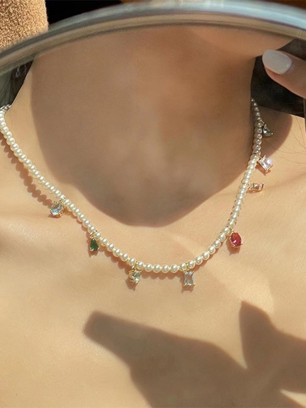 Collar de perlas de imitación con colgante de circón