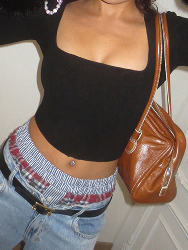 Camiseta de manga larga con escote cuadrado y ombligo al descubierto