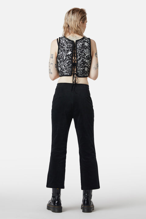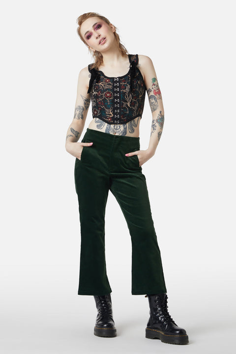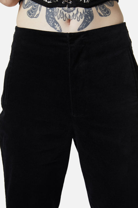 Stap in de wereld van verfijning met deze prachtige fluwelen flared broek van Dangerfield! Deze flared broek heeft een getailleerde pasvorm die je figuur flatteert en voegt een vleugje glamour toe aan elke outfit. Met handige zakken aan de zijkanten en een gulp aan de voorkant combineert deze broek moeiteloos stijl en functionaliteit.