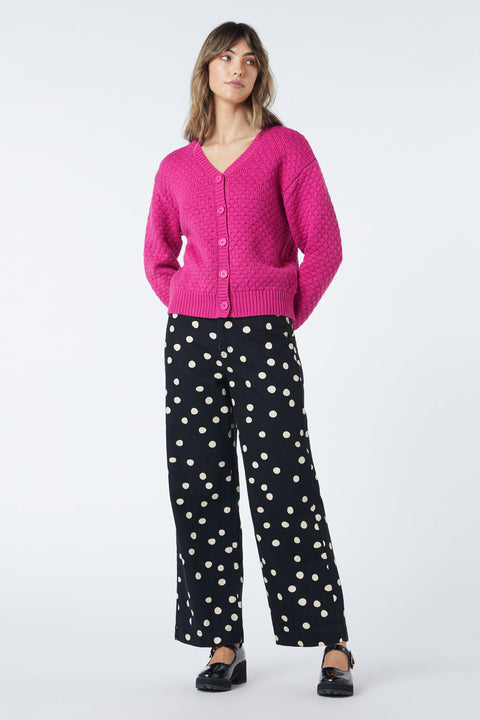 Wikkel jezelf in de knusse omhelzing van het Cozy Long Sleeve Cardi van Princess Highway, een item dat warmte combineert met een vleugje speelsheid. Deze schat met textuur en een heerlijk bubbelbreisel is de perfecte oplossing voor koude winterochtenden en luchtige avondwandelingen. De V-hals en knoopsluiting aan de voorkant voegen een vleugje klassieke charme toe en nodigen uit tot het gemakkelijk dragen over je favoriete tops. Ontworpen voor een comfortabele pasvorm die je lichaam en armen zachtjes omhult, is dit de knusse oase waar je steeds weer naar terug zult grijpen. Het vest is met liefde geweven van een acryl-katoenmix, wat zorgt voor zowel warmte als ademend vermogen. Kies uit een zachtroze tint of een rustgevende turquoise kleur om je garderobe op te fleuren. Ideaal voor een casual dagje uit of een comfortabele avond thuis, dit vest is een veelzijdige metgezel voor alle seizoenen.
