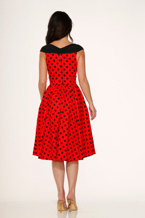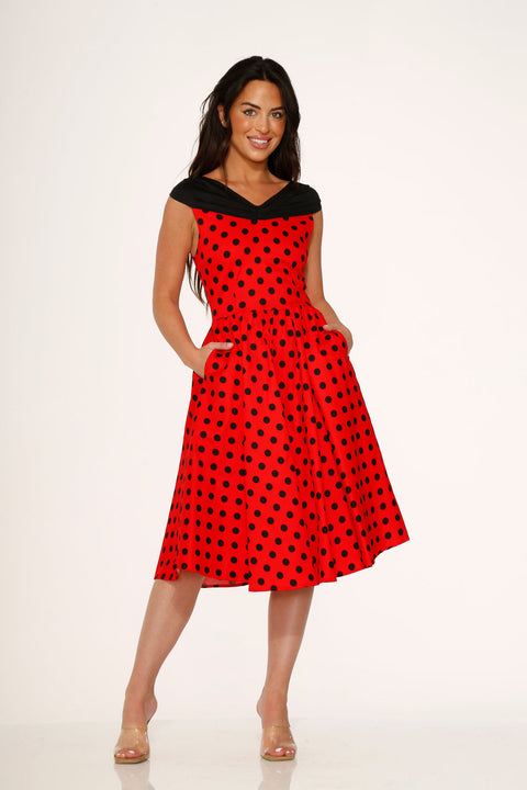 Rood-zwarte swingjurk met stippen