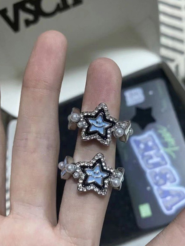 Anillo de estrella con diamantes de imitación