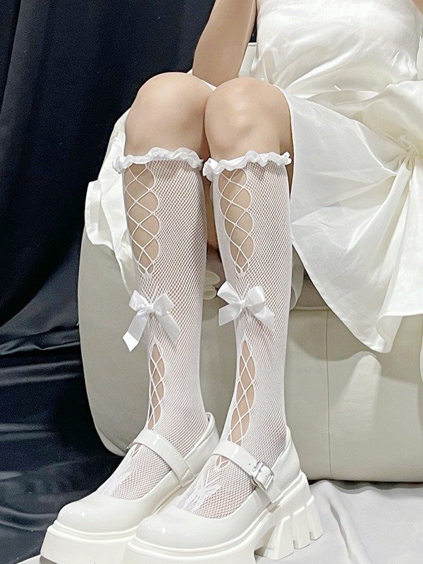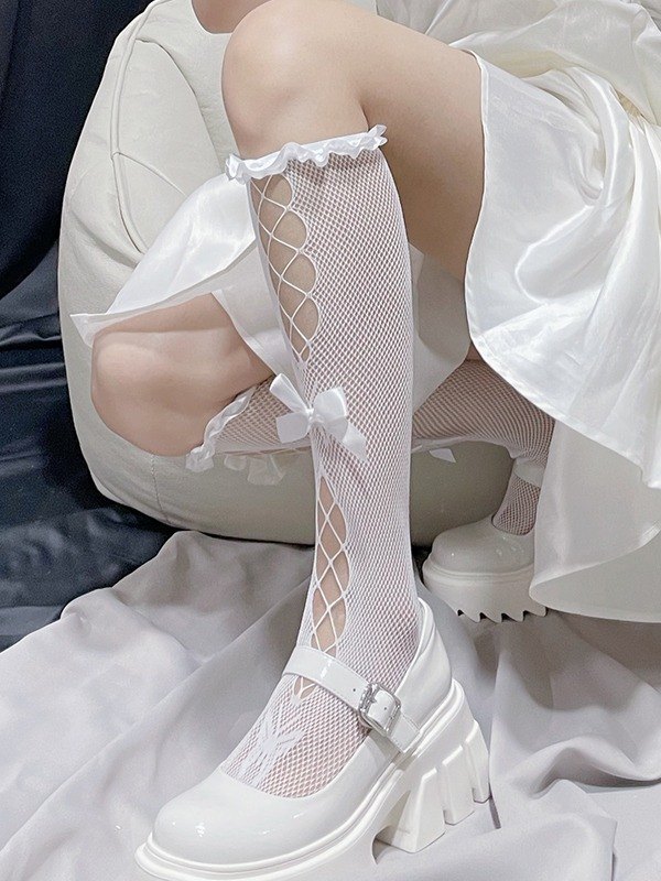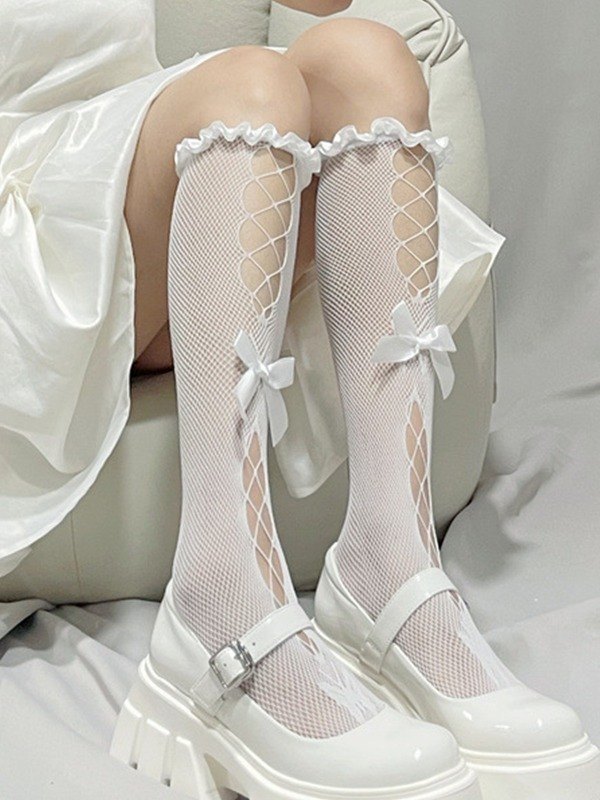 Calcetines de rejilla con abertura y ribete de volantes