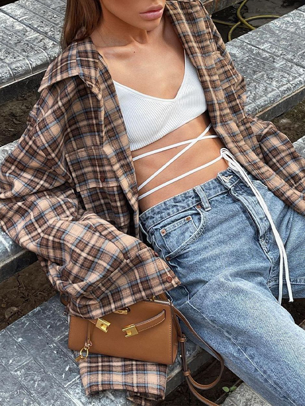 Sé el primero en valorar “Camisa de manga larga holgada vintage a cuadros”