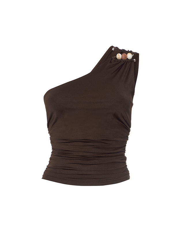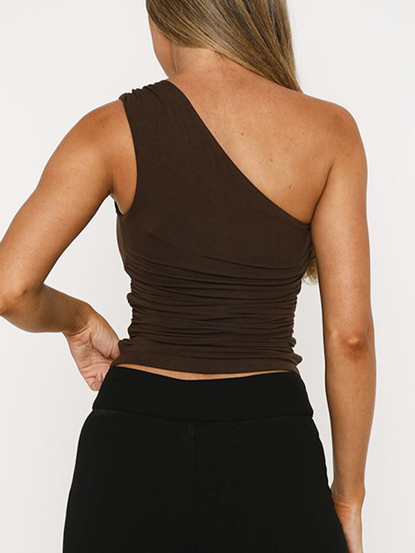 Camiseta sin mangas con un solo hombro que mira al ombligo