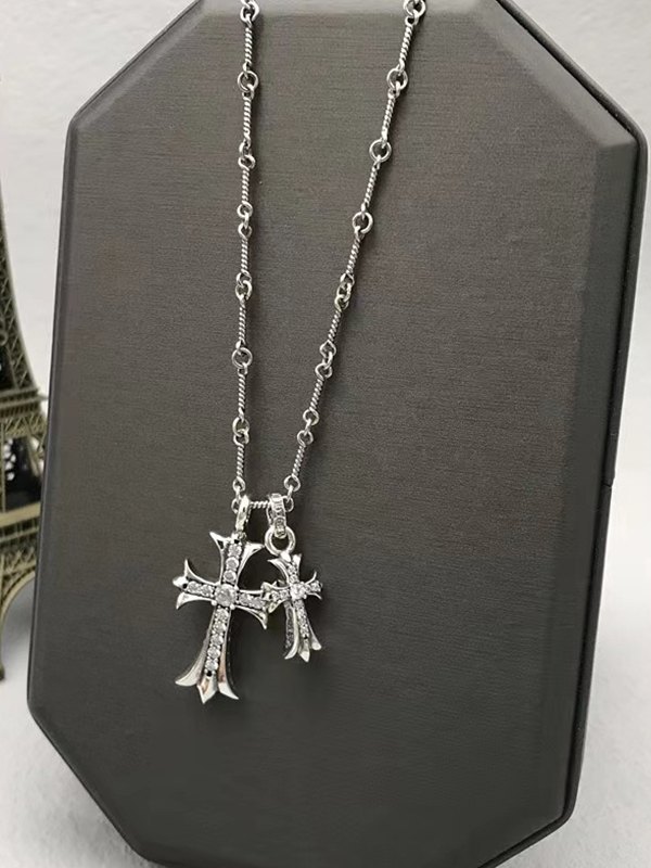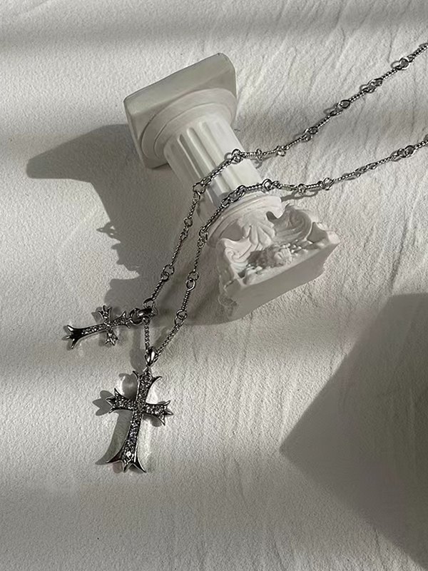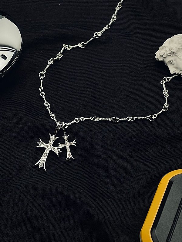 Sé el primero en valorar “Collar con colgante de doble cruz de diamantes de imitación”