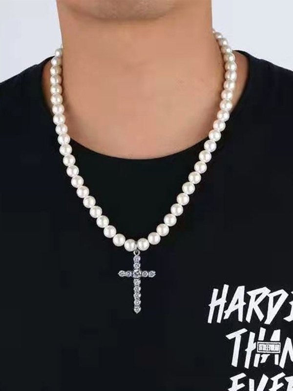 Sé el primero en valorar “Collar de perlas de imitación con colgante de cruz de diamantes de imitación para hombre”