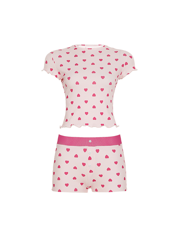 Conjunto de dos piezas con borde enrollado y estampado Love