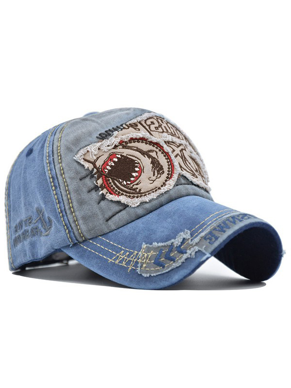 Detalles: Con correas ajustables , letra tiburón bordada en él, presenta un diseño de bordes deshilachados sin rematar.