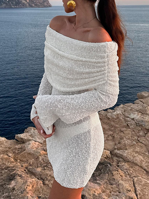 Minivestidos de un solo hombro, color liso, sin espalda, mangas largas