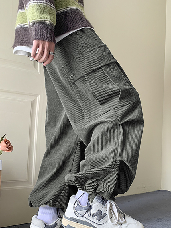 Diseño único: Estos pantalones presentan un diseño de pana que los hace no solo elegantes, sino también más abrigados que los pantalones normales. Los amplios bolsillos estilo cargo le dan un toque práctico y moderno.