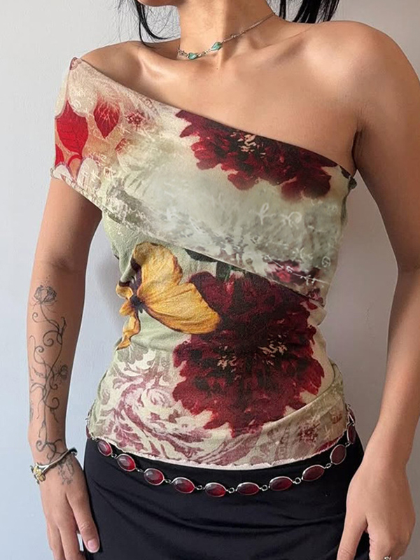 Top de tirantes con estampado vintage de un solo hombro