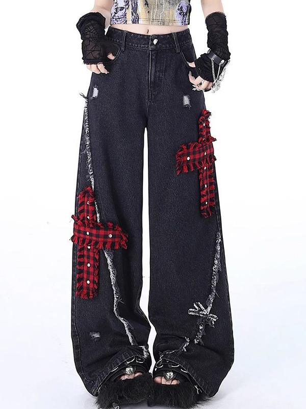 Vaqueros cargo rectos con raglán punk