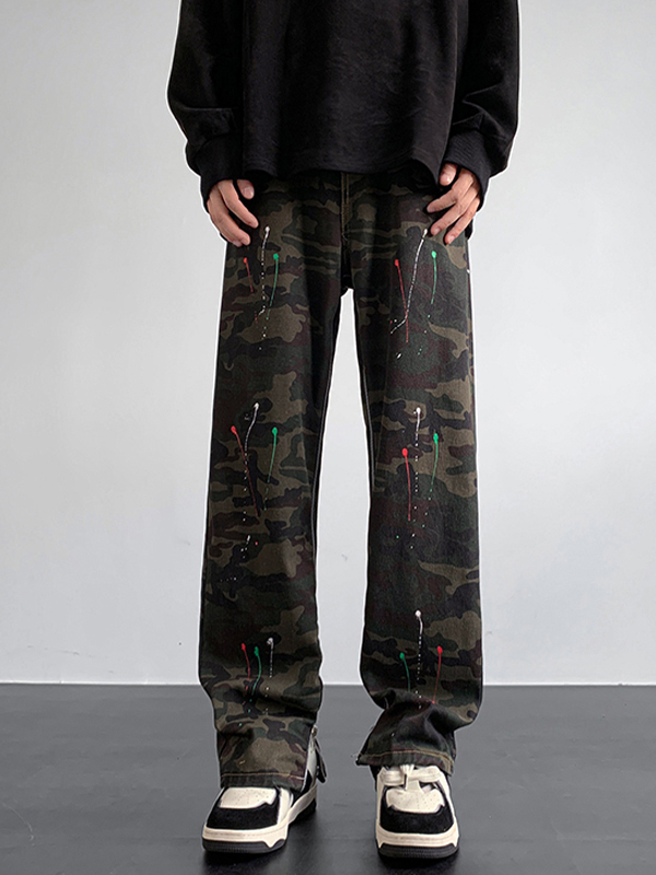 Diseño único: El estampado de camuflaje y tinta salpicada de estos jeans les da un estilo fresco y urbano que seguramente hará una declaración.