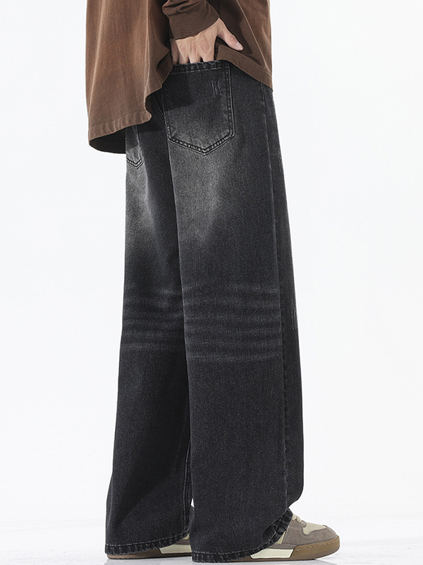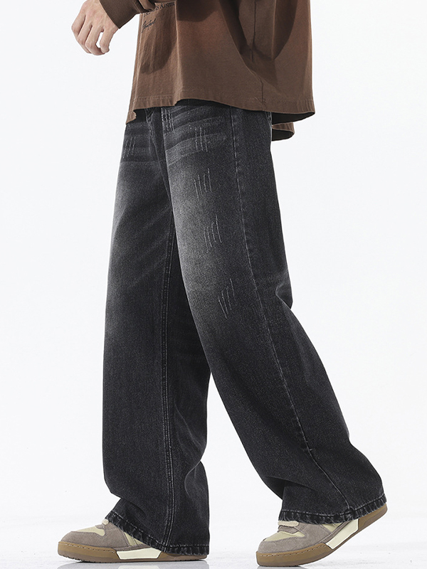 Vaqueros rectos y holgados con bigotes de gato estilo retro americano